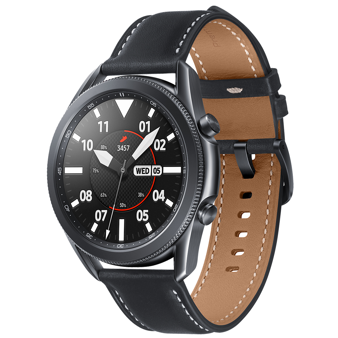 Galaxy Watch 3 е по-тънък и по-лек, отличава се с изискан външен вид и класическа рамка, която пасва идеално на китката. Елегантният дизайн се допълва и от висококачествена каишка от естествена кожа. Смарт часовникът измерва физическите данни на потребителите чрез ново поколение вградени сензори, които дават обратна връзка в реално време. Изключително подходящ за активни хора с отношение към поддържането на добра физическа форма, часовникът е снабден с крачкомер, притежава функция за напомняне при заседяване на едно място, проследява качеството на съня. Снабден е и с над 120 програми за домашна тренировка, като следи сърдечната честота в реално време.