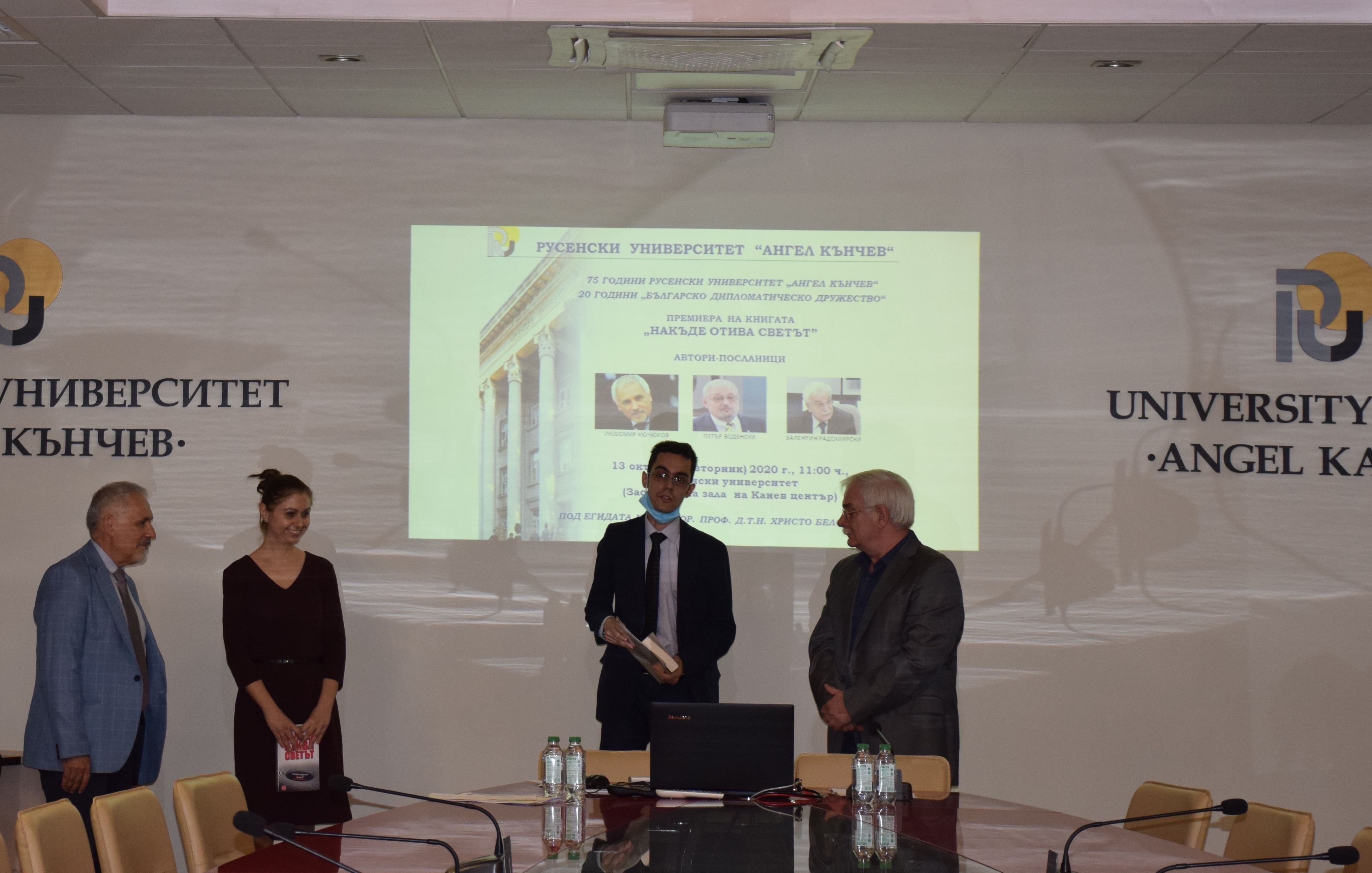 Днес, 13 октомври (вторник) 2020 г., в заседателната зала на Канев център, Русенски университет, се състоя премиерата на сборника „Накъде отива светът” със статии на посланици, членове на Българското дипломатическо дружество. Премиерата в Русенския университет беше първата в академичната общност у нас, както и първата, извън София. Изданието е по повод 20 години от основаването на „Българското дипломатическо дружество“ и е на издателството ”Изток – Запад”.