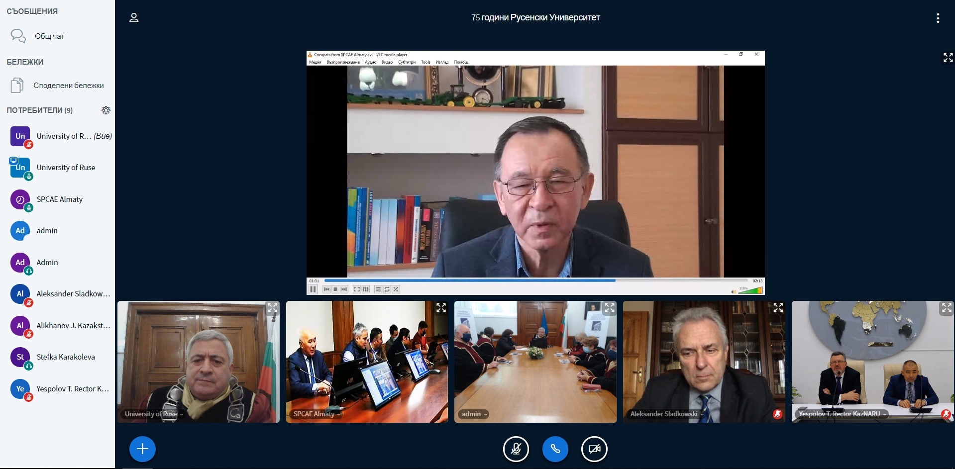 ПОЗДРАВЛЕНИЯ ЧРЕЗ ВИДЕО КОНФЕРЕНТНА ВРЪЗКА ЗА 75-ГОДИШНИНАТА НА РУСЕНСКИЯ УНИВЕРСИТЕТ
