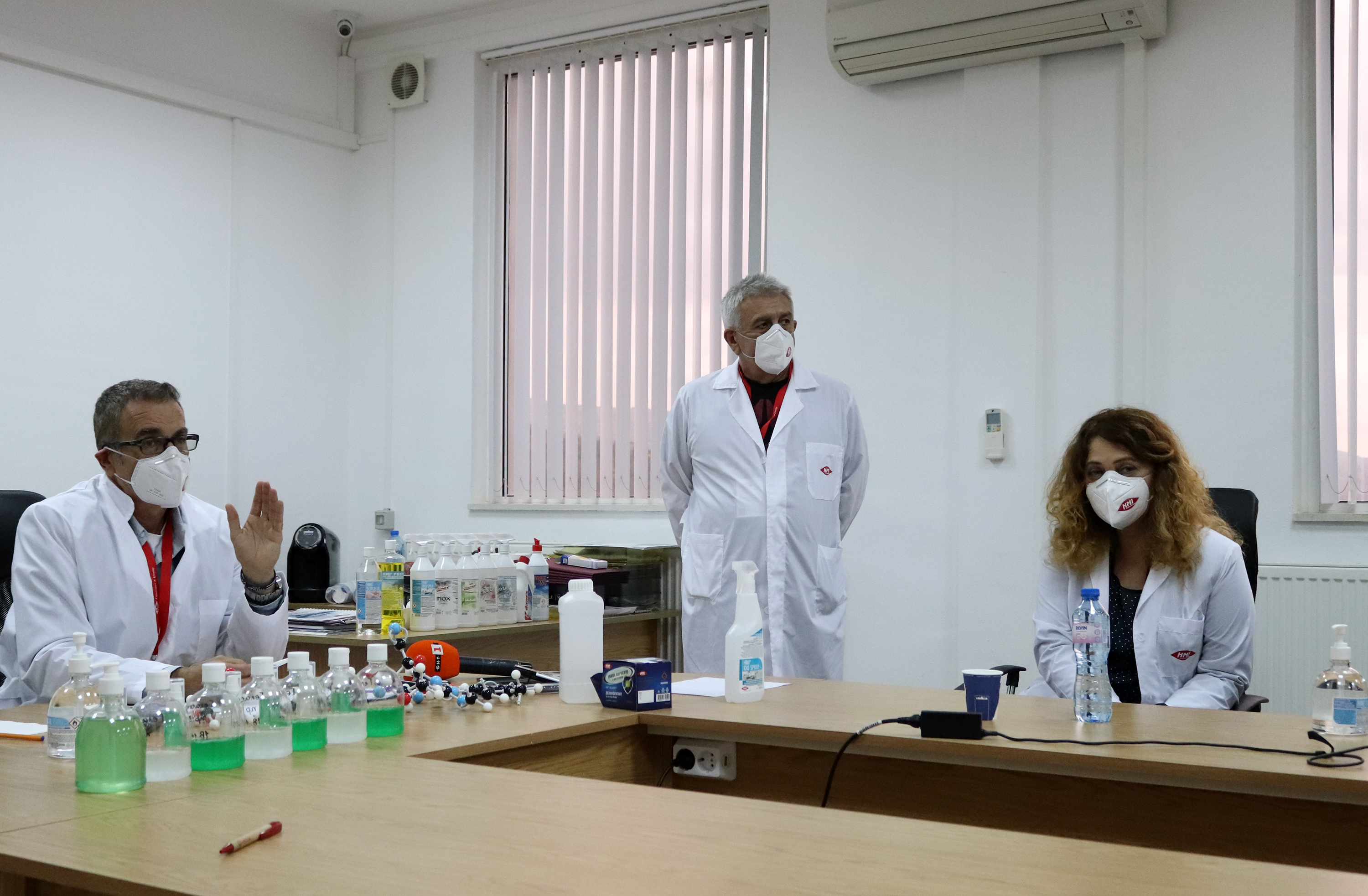 „Сега на пазара има търсене на дезинфектанти, но не се обръща внимание на качеството, не може да пакетираш алкохол и да го продаваш като дезинфектант, възползвайки се от стреса на хората заради вируса и пандемията”, подчерта проф. Мермерски. Новият продукт ще бъде не само ефективен, но и щадящ за кожата, полезен и в известна степен „секси”, заради ароматите и привлекателните цветове, с които ще бъде обагрен, уточни той и посочи, че ще има и детска серия. Според него с тази концепция ще бъде променено потребителското мислене, като хората с удоволствие ще извършват нещо, което сега им вменяват, като задължително. Ученият каза, че предвид конкурентната среда няма как да сподели какви ще бъдат активните агенти в новата формула, но сред тях ще са витамините А и Е, на растителна основа, които ще премахват вредния ефект върху кожата, от обикновените дезинфектанти. Дружеството “Хигиенно-Медицинска Индустрия“ е създадено преди 25 години. В момента в него се произвеждат над 200 продукта в пет бизнес сектора, насочени както към медицината, така и към опазване на общественото здраве, отбеляза Нели Денева, маркет мениджър. Тя поясни, че политиката на предприятието е насочена към осигуряване на биосигурност както към специфичните сектори, така и към крайния потребител. Заради пандемичната ситуация за ръководството на фирмата е важно да гарантира дезинфектанти, като количества на българския пазар, въпреки че изнася и за Индия, Румъния, Молдова, Северна Македония и Италия, заяви Евгени Костадинов.