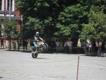 Майсторско управление на мотори показват на централния площад "Велбъжд" в Кюстендил участниците в международен мото-съб...