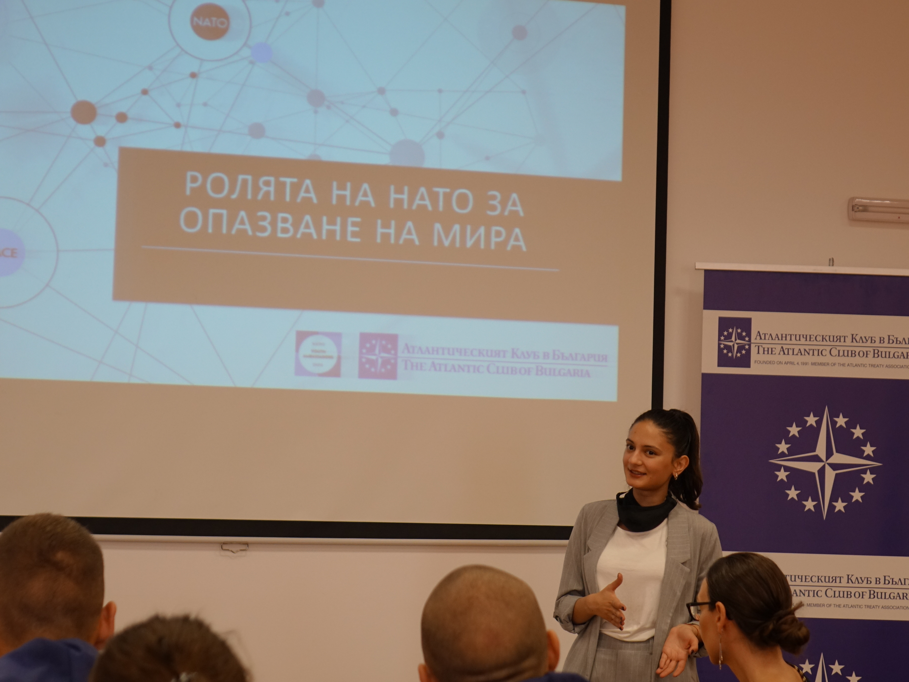 16-те младежки посланици на НАТО бяха и медиатори в представянето на същността и дейността на Алианса. „Ходихме по училищата и разяснявахме на учениците от горен клас с какво се занимава организацията, какви са нейните цели и важността ѝ за глобалното мироопазване“, посочи Венилин Нешев.