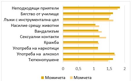 Освен това се установява, че най-често срещаните проблемни поведения, които са и най-значимо свързани с прояви на агресия (най-вече словесна) към съученици и учители в училище са: бягствата от училище, употребата на алкохол, тютюнопушенето, лъжите с цел лична облага и срещите с приятели, които родителите не одобряват.