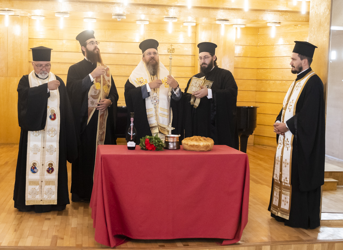 След тържественото откриване епископ Поликарп, придружен от ректора и духовниците поръси със светена вода концертната зала и обновените кабинети на четириетажната сграда.
