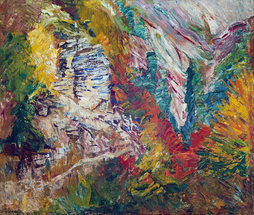 "Особен и нетрадиционен за Борис Денев е есенен пейзаж от 30-те години на 30-и век. Силното напластяване с шпакла на живописна материя ни въвежда във въображаемо пространство, което по своя характер напомня цветен вихър. При внимателно вглеждане в петната, откриваме малка пътечка, която се губи в каменисти чукари и пропасти. Сред тях различаваме пастир, който превежда кози през планинска пътека. Липсата на дълбочина и въздушно изсветляване на цвета сплесква плановете на картината в декоративно пространство, което ни препраща към абстракцията", разказват кураторката Марияна Аврамова.
