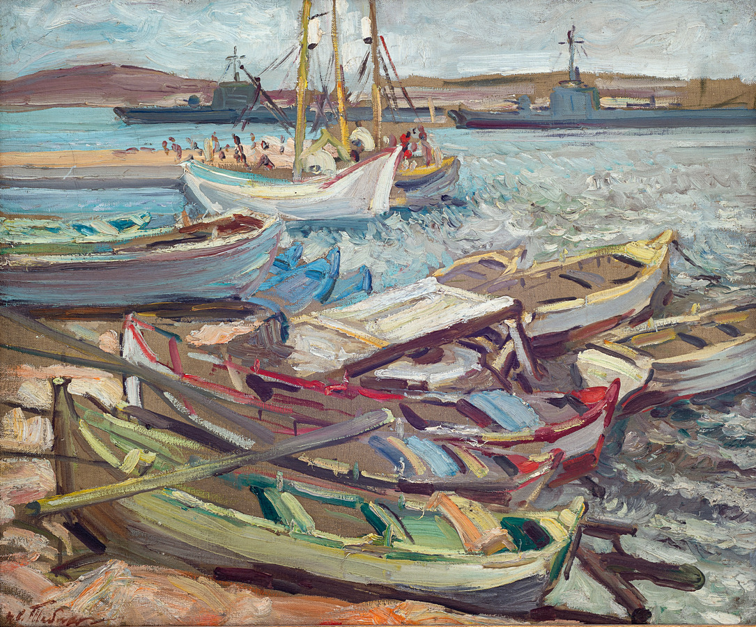 Картината "Венеция" на Дечко Узунов е от 1962 г. "Творбата е интересна не само с композиционното си решение, но и с това, че буди интерес, когато е показана през 60-те години в обща художествена изложба. Тогава, с още няколко произведения приковават вниманието на публиката с модерния си художествен изказ и бележат раздялата с нормативната естетика и тематика", посочва Аврамова.