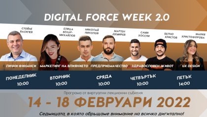 дигиталното обучение Digital Force Week от 14 до 18 февруари 2022 г., съобщиха