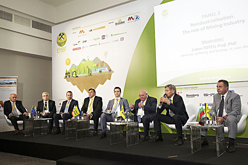 По време на дискусията "Реиндустриализация. Ролята на минерално-суровинната индустрия"с модератор проф. д-р ЛЮБЕН ТОТЕВ, ректор на МГУ "Св. Иван Рилски" се посочиха факторите за растеж на добивната и на свързаните с нея следващи по веригата на стойността индустрии, както и се представиха редица успешни истории и факти от тежката индустрия на България. В панела взеха участие проф. д-р ЛЪЧЕЗАР ЦОЦОРКОВ, председател на УС и на БМГК и председател на Надзорния съвет на "Асарел-Медет" АД, проф. д.т.н. НИКОЛАЙ ВЪЛКАНОВ, заместник-председател на УС на БМГК и председател на Съвета на директорите на "Минстрой-Холдинг" АД, Антон ПЕТРОВ - Председател на Българската асоциация на металургичната индустрия (БАМИ, д-р Румен АТАНАСОВ, Председател на Българската асоциация на електротехниката и електрониката (БАСЕЛ) и Михаил КОЛЧЕВ - Председател на Българската камара на химическата индустрия (БКХП). Специално отношение по въпроса взеха зам.-министрите на енергетиката и околната среда и водите - г-н Жечо Станков и г-н Красимир Живков.