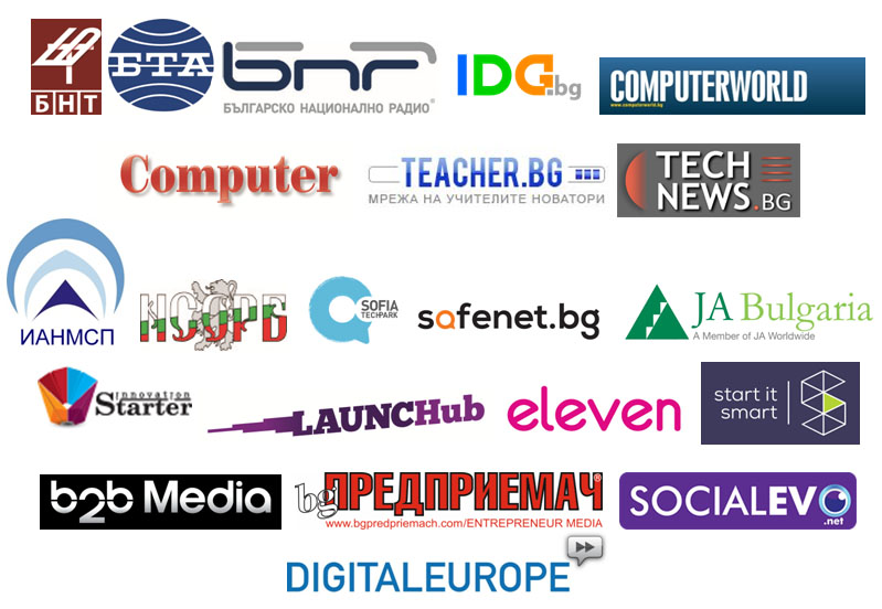 В партньорство с: БНТ, БТА, БНР, IDG.bg, Computerworld, Computer, Teacher.bg, TechNews, Изпълнителна агенция за насърчаване на малките и средните предприятия, Национално сдружение на общините в Република България, Sofia Tech Park, Национален център за безопасен интернет, Junior Achievement България, Innovation Starter, LauncHub, Eleven, Start it Smart, b2b Media, бгПРЕДПРИЕМАЧ, SocialEvo и Digital Europe.
