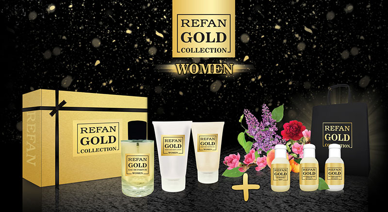 Козметичните продукти в комплектите REFAN GOLD COLLECTION деликатно почистват и се грижат за кожата, като запазват влагата в нея и трайно я ароматизират, а неустоимите парфюми от серията са със специално разработени благоуханни композиции, които щадят кожата и въодушевяват сетивата.